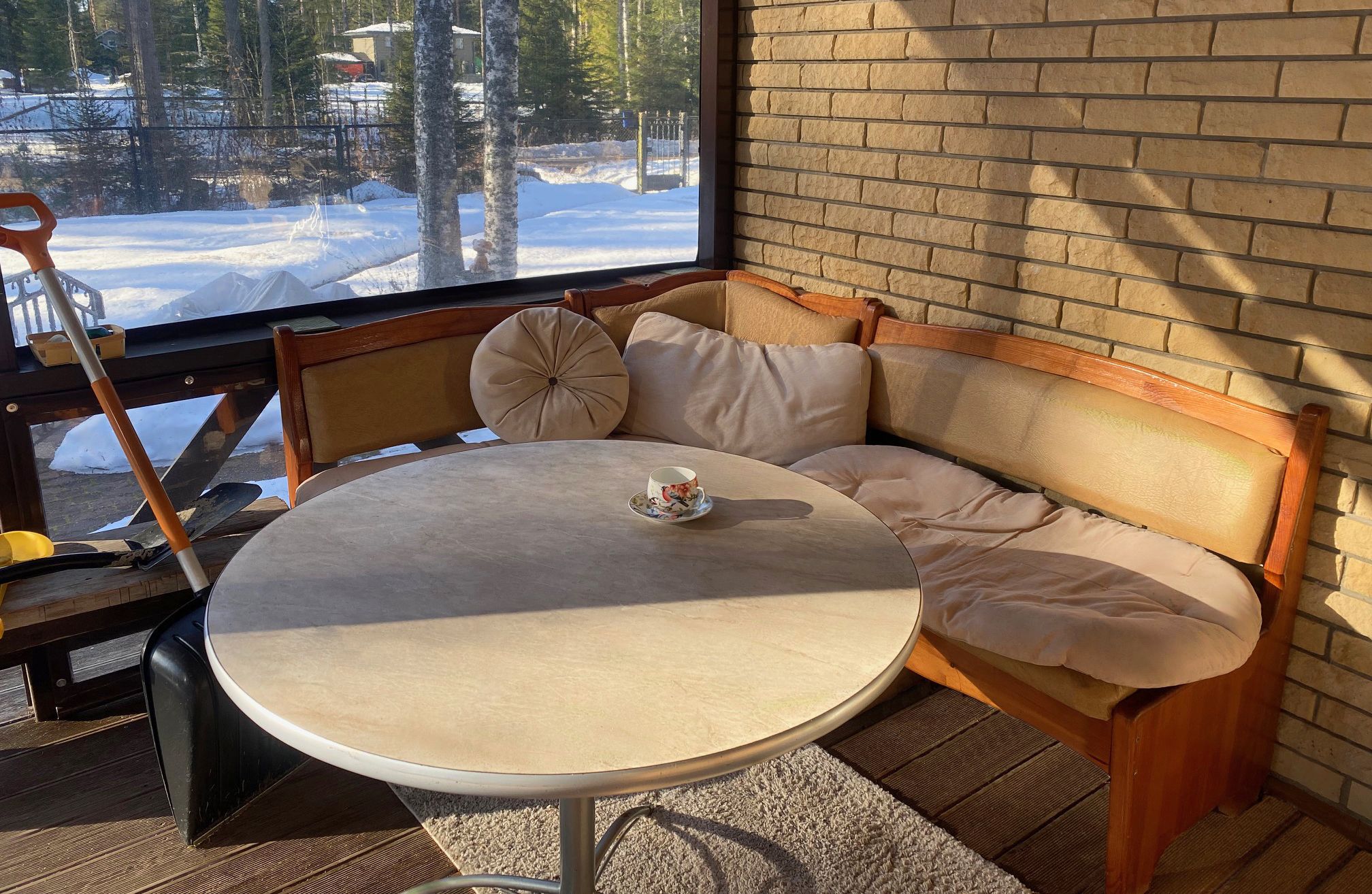 Сегодня воскресенье, девятого марта – погода шепчет: солнце, плюс три, безветрие. Закончилась суета с праздниками. Решил первый раз в этом сезоне выпить чашку утреннего кофе не в доме, а с чувством, на улице. Вышел на веранду, сел на мягкий диванчик, зауютился в теплой куртке — потягиваю кофе, наслаждаюсь моментом. Прозрачный «вкусный» воздух услаждает кожу, белый искристый снег — глаза, щебет синичек — ухо. Но что-то нервирует… Принюхался. А-а, кошачья моча. Мягкий диванчик, оказывается, не пустовал все эти месяцы. Мартовские коты тоже решили, что здесь уютно. Почему всегда есть место ложке дегтя? Диалектика, понимаешь ли: единство и борьба противоположностей…